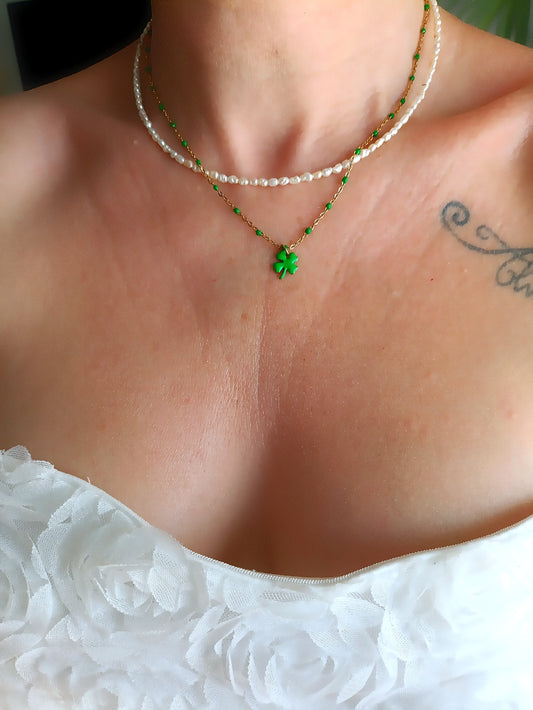 Collier Chance / Créations en Acier inoxydable , trèfle émaillé