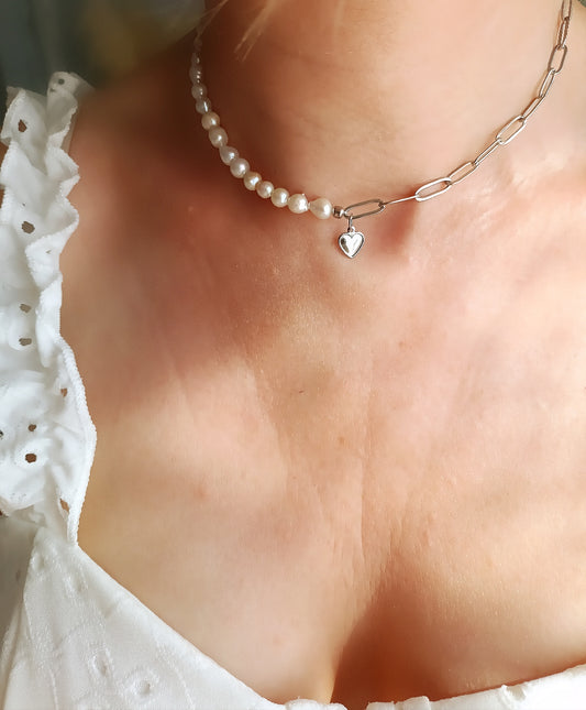 Collier Je suis tombée pour elle / Acier inoxydable, perles de nacre