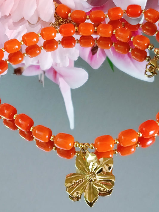 Collier Abricot / Acier inoxydable, perles en résine, personnalisable