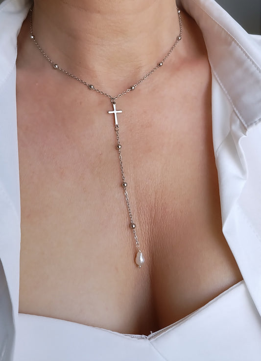 Collier Mary / Acier inoxydable, perles d'eau douce