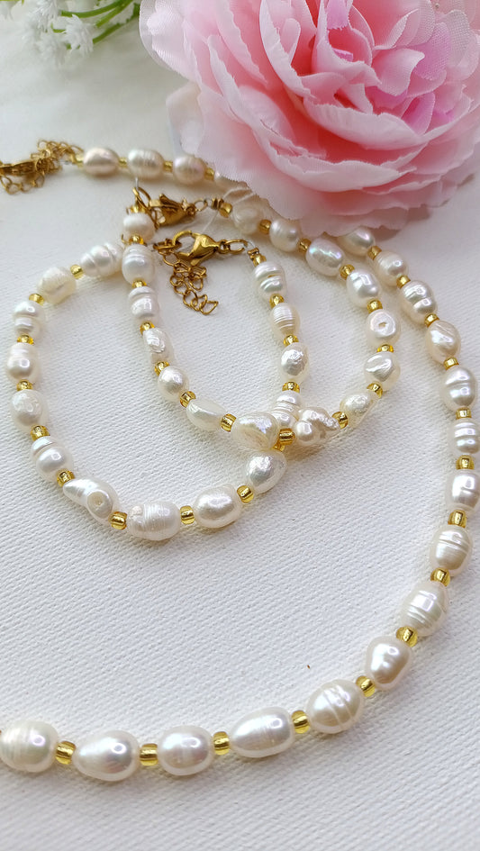 Collier Perles d'eau douce / Créations en perles d'eau douce, perles de verre Acier inoxydable
