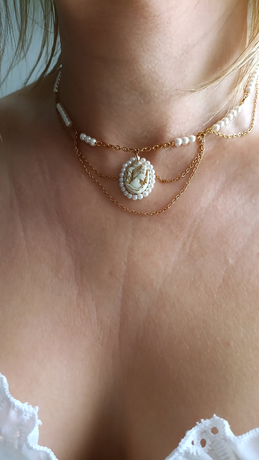 Collier Camée / Création de collier, Acier inoxydable, perles de verre nacrées