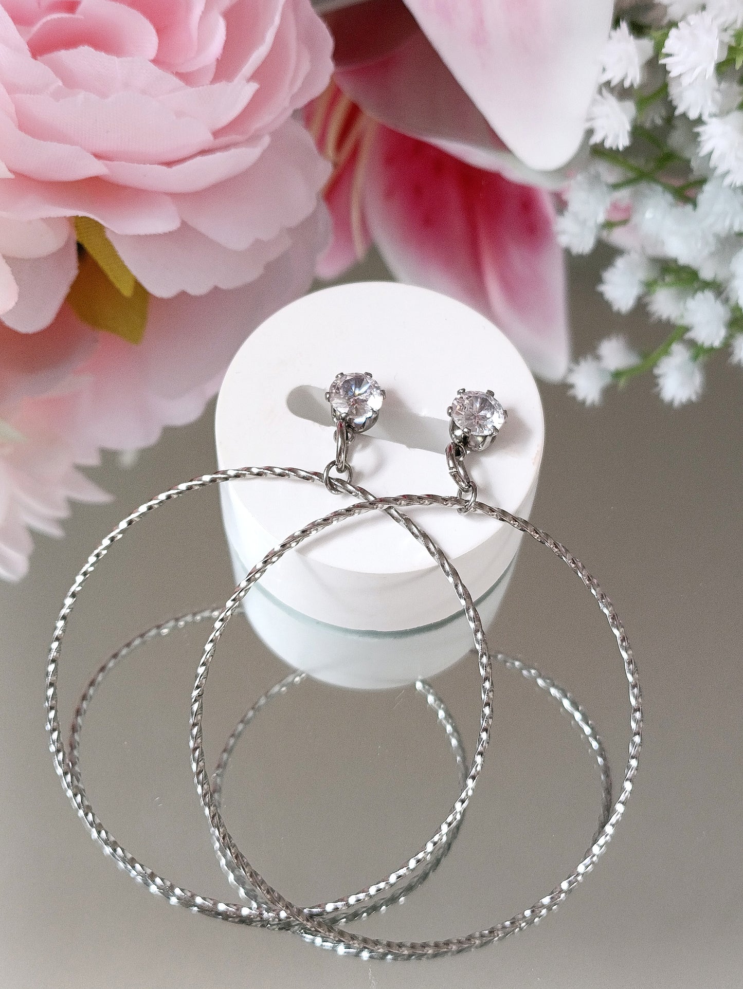 - Puces composées d'un oxyde de zirconium serti par des griffes, fermoir papillon.