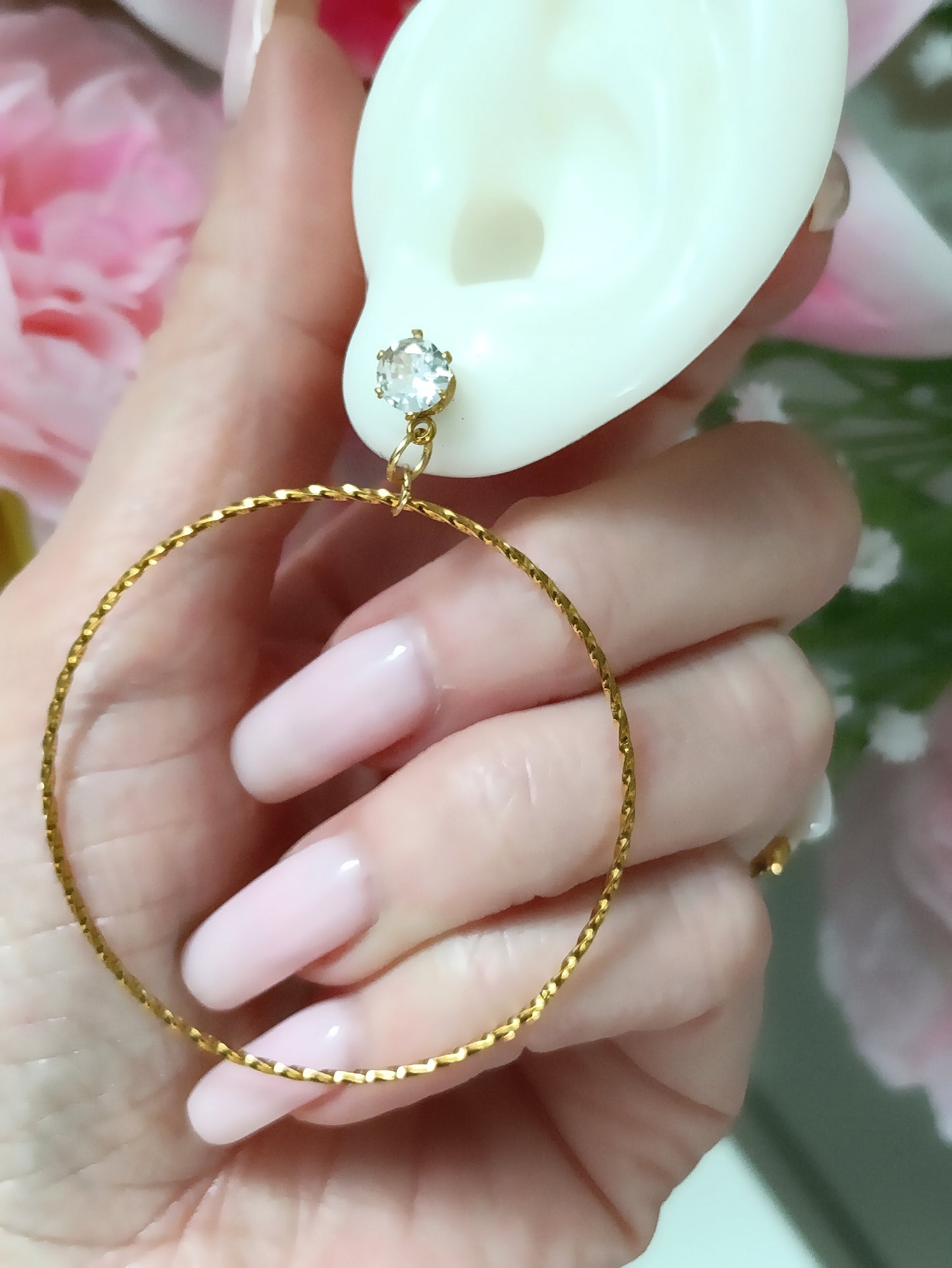 - Une créoles finement ciselée se balance délicatement