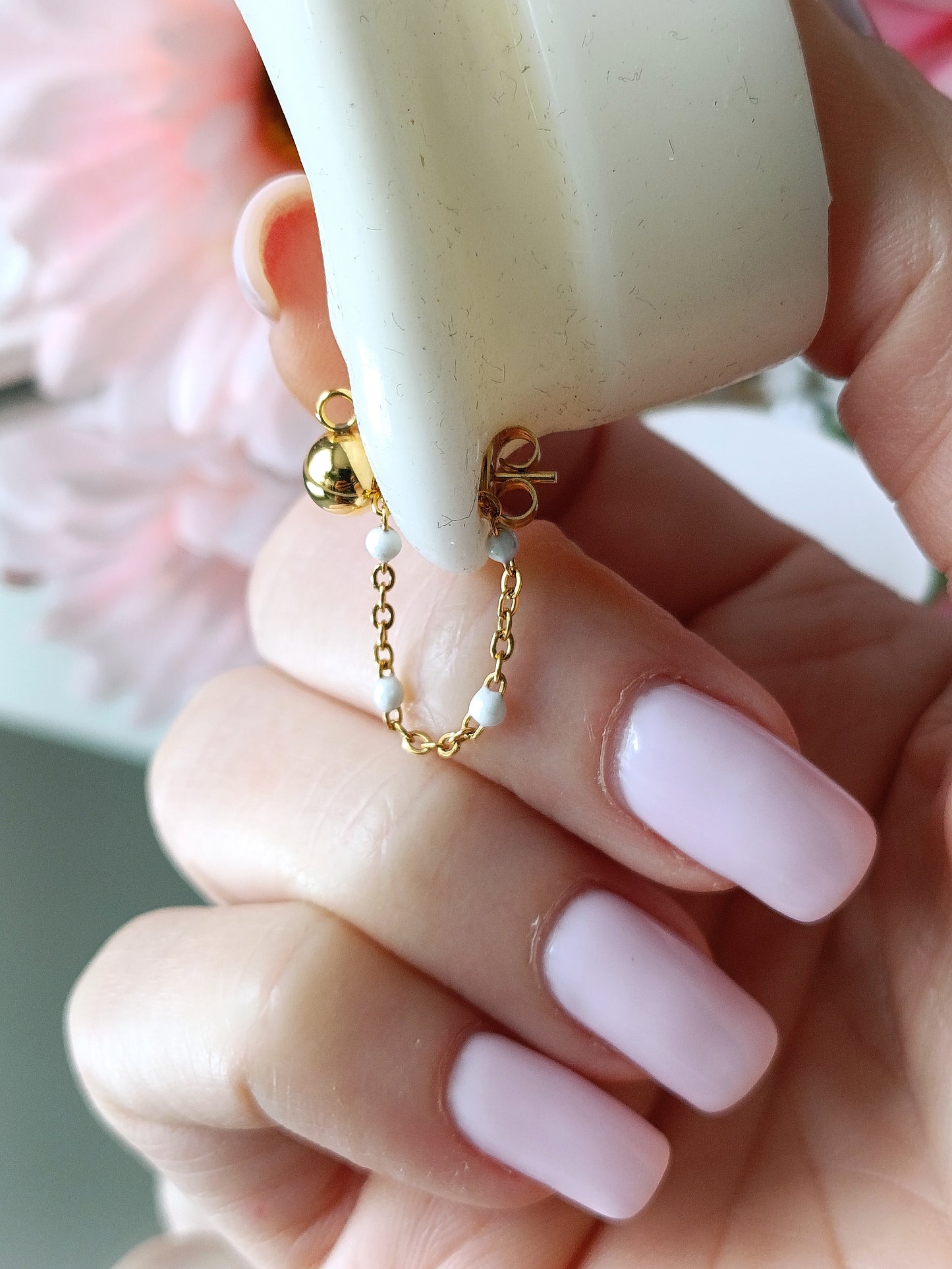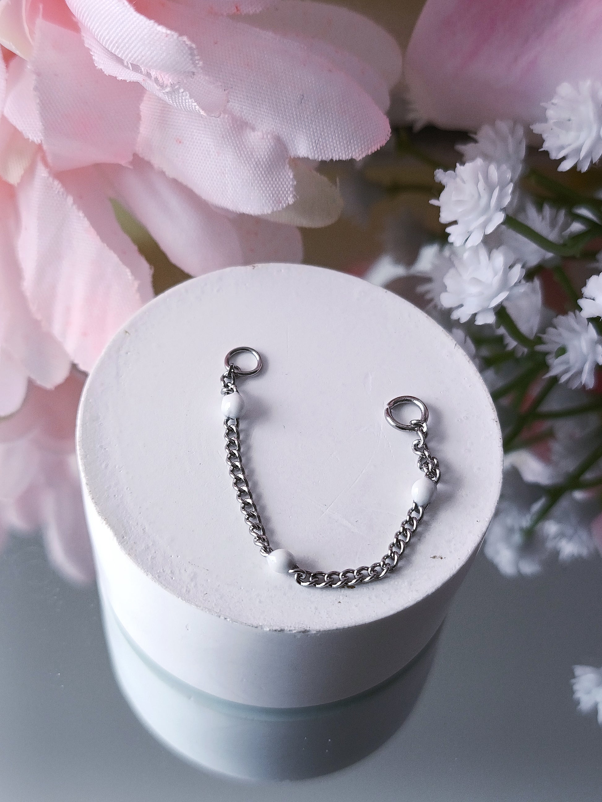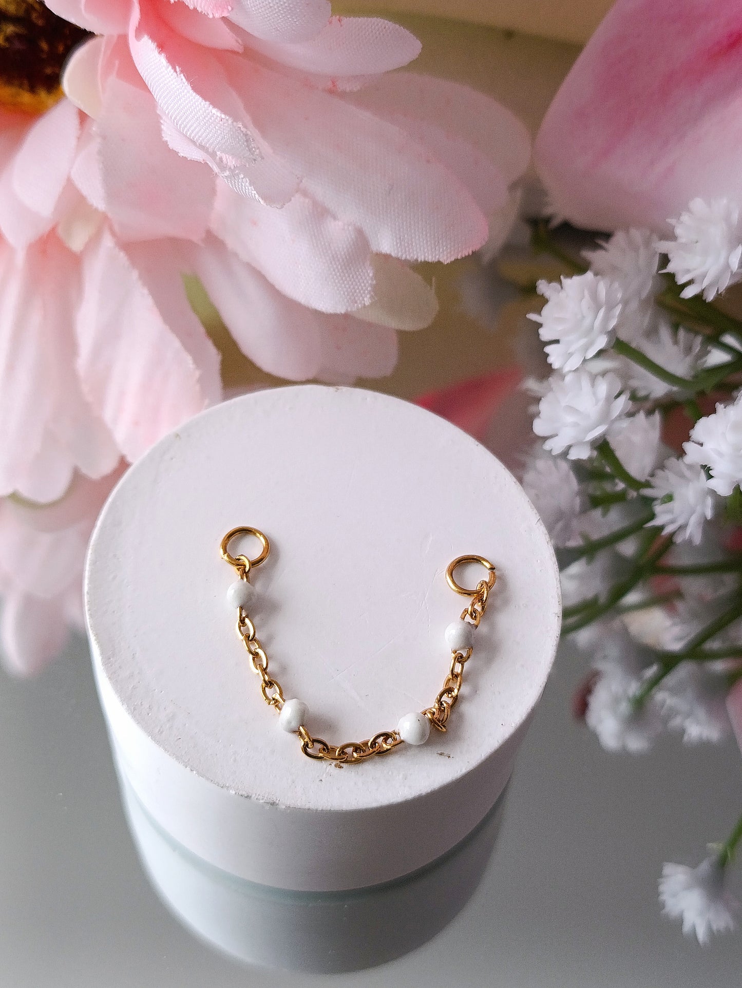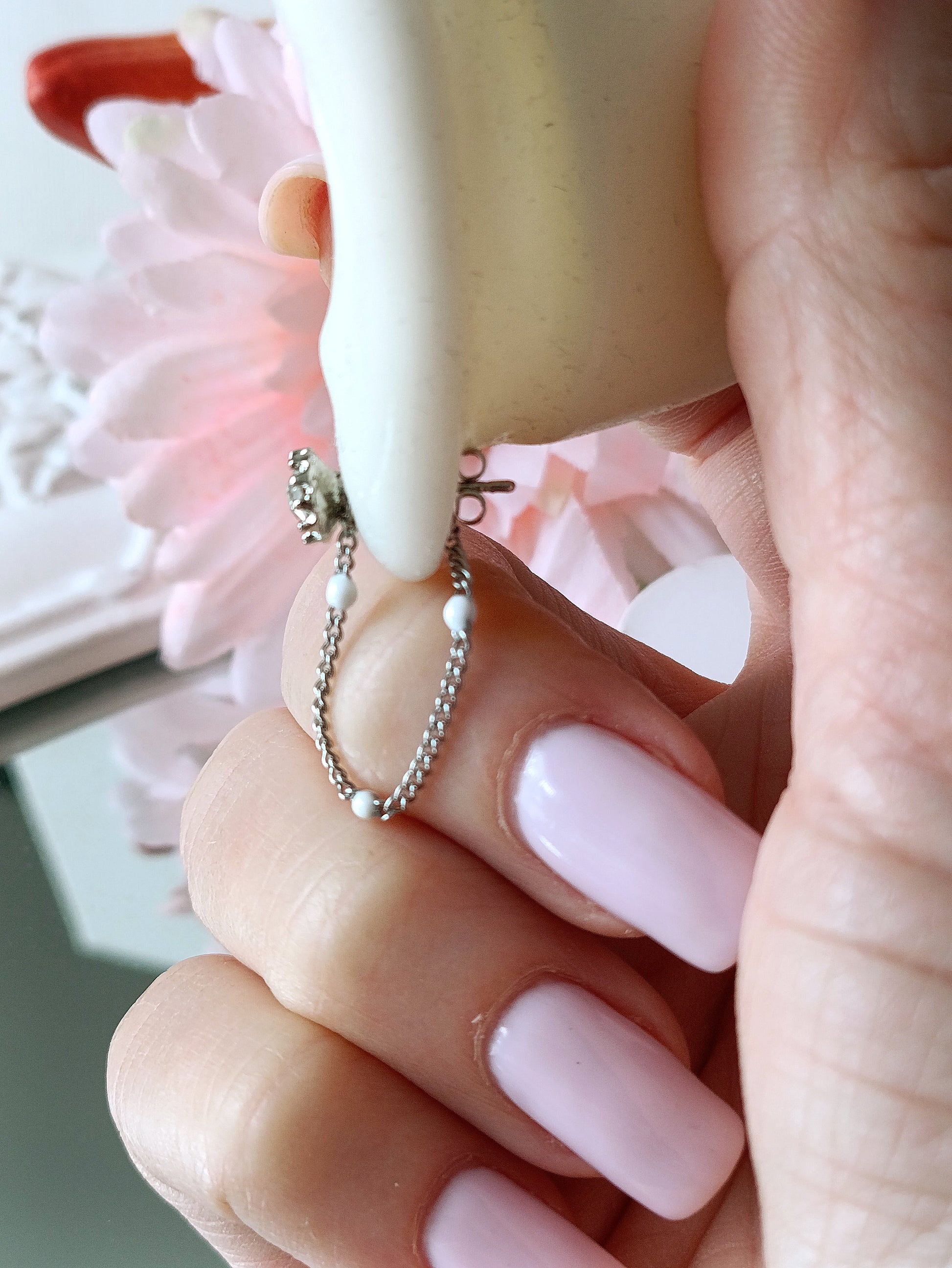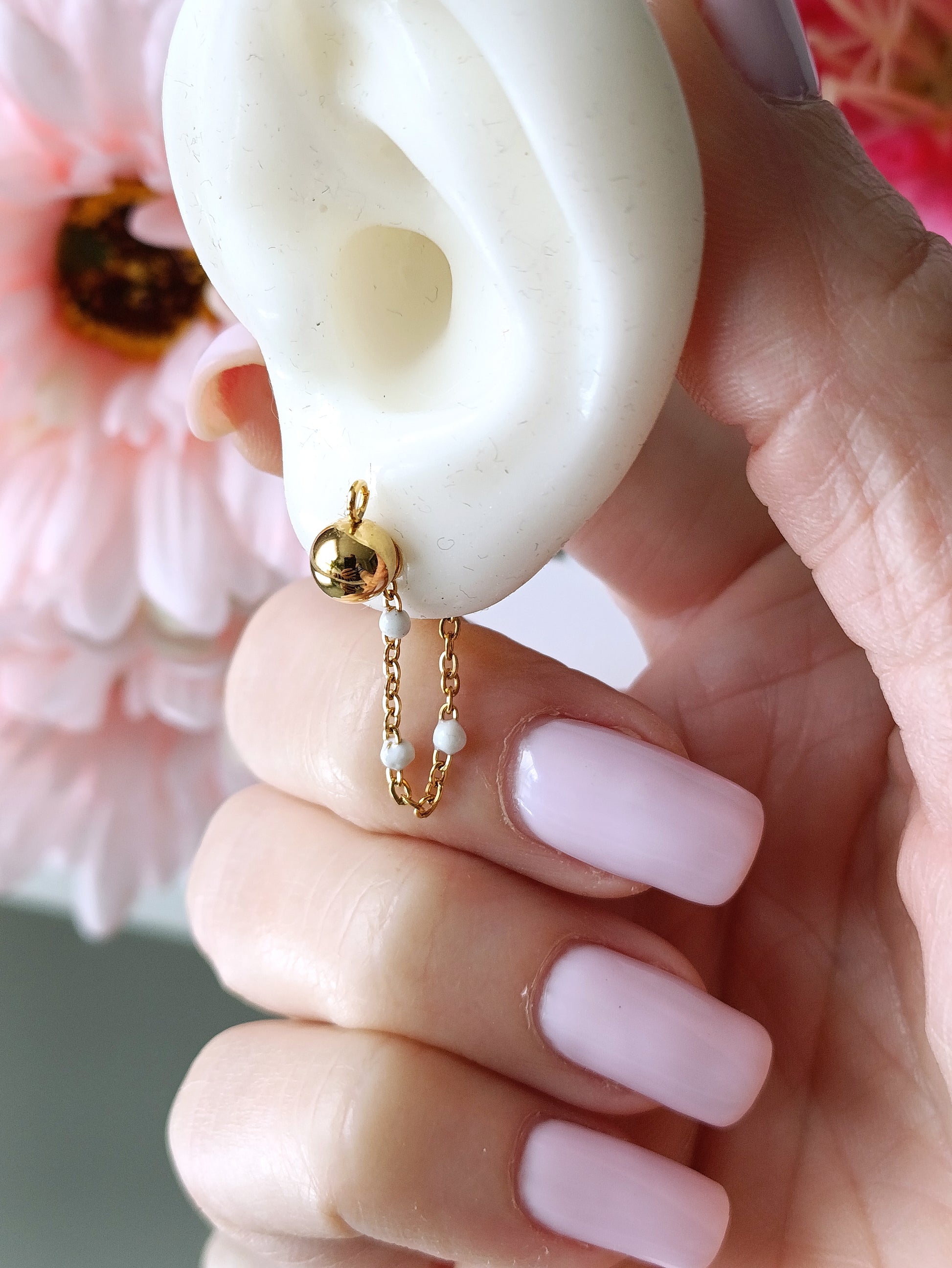 - Composition réalisée à partir d'une fine maille perlée. S'adapte parfaitement à toutes vos boucles puces pour un style différent en un claquement de doigts.