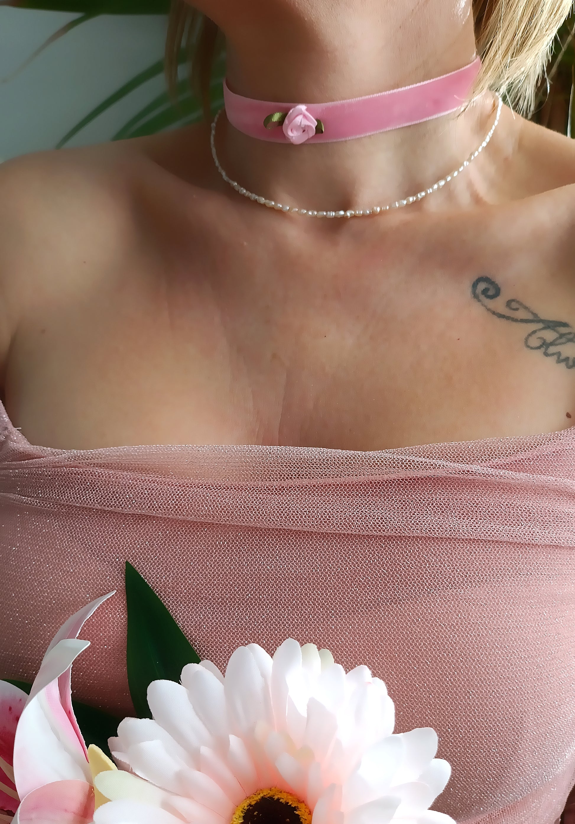 - Entièrement artisanal, la rose est cousue main sur le ruban. Ce ras de cou d'une finesse absolue vous parera d'un atout charme indéniable.