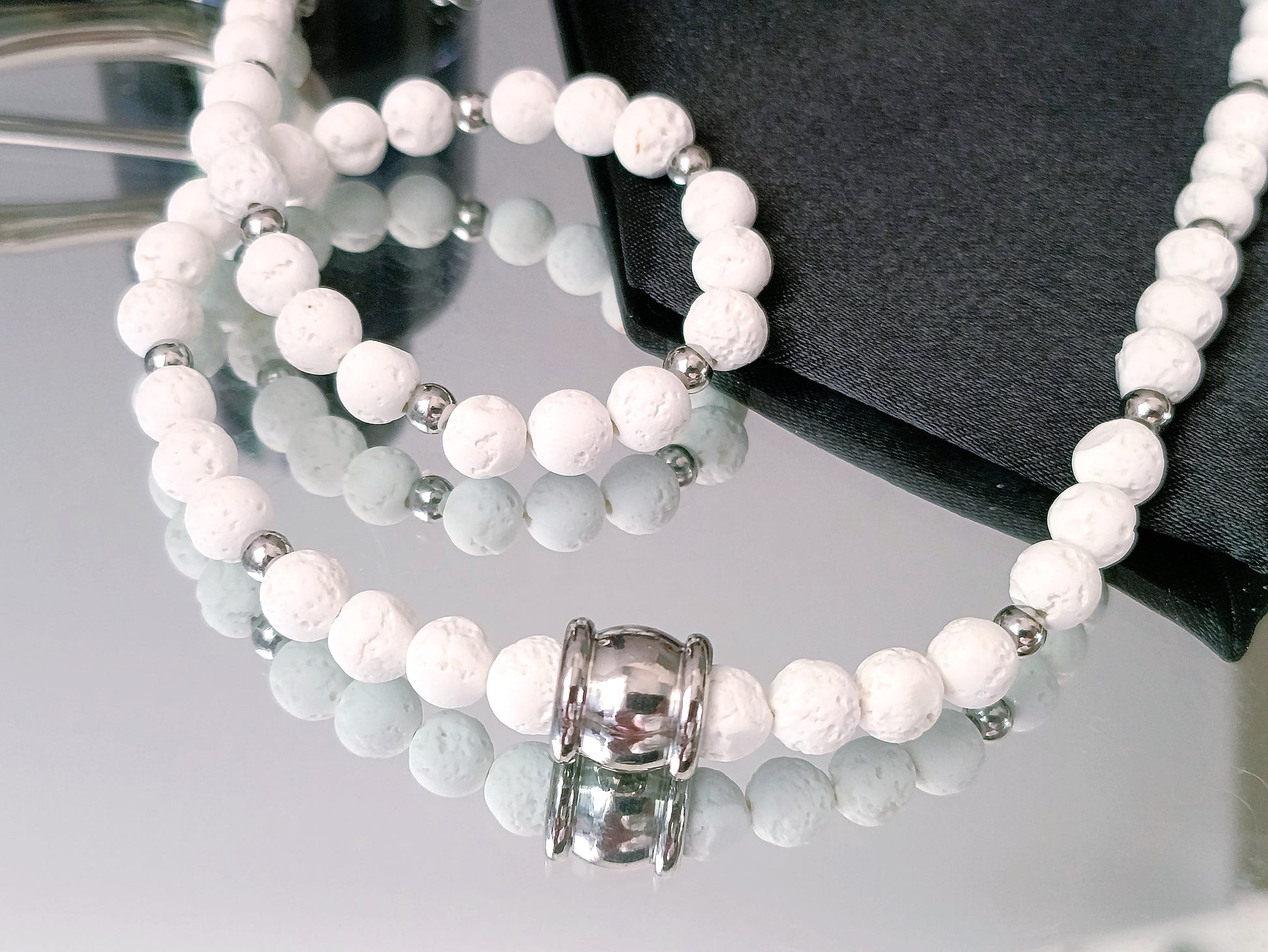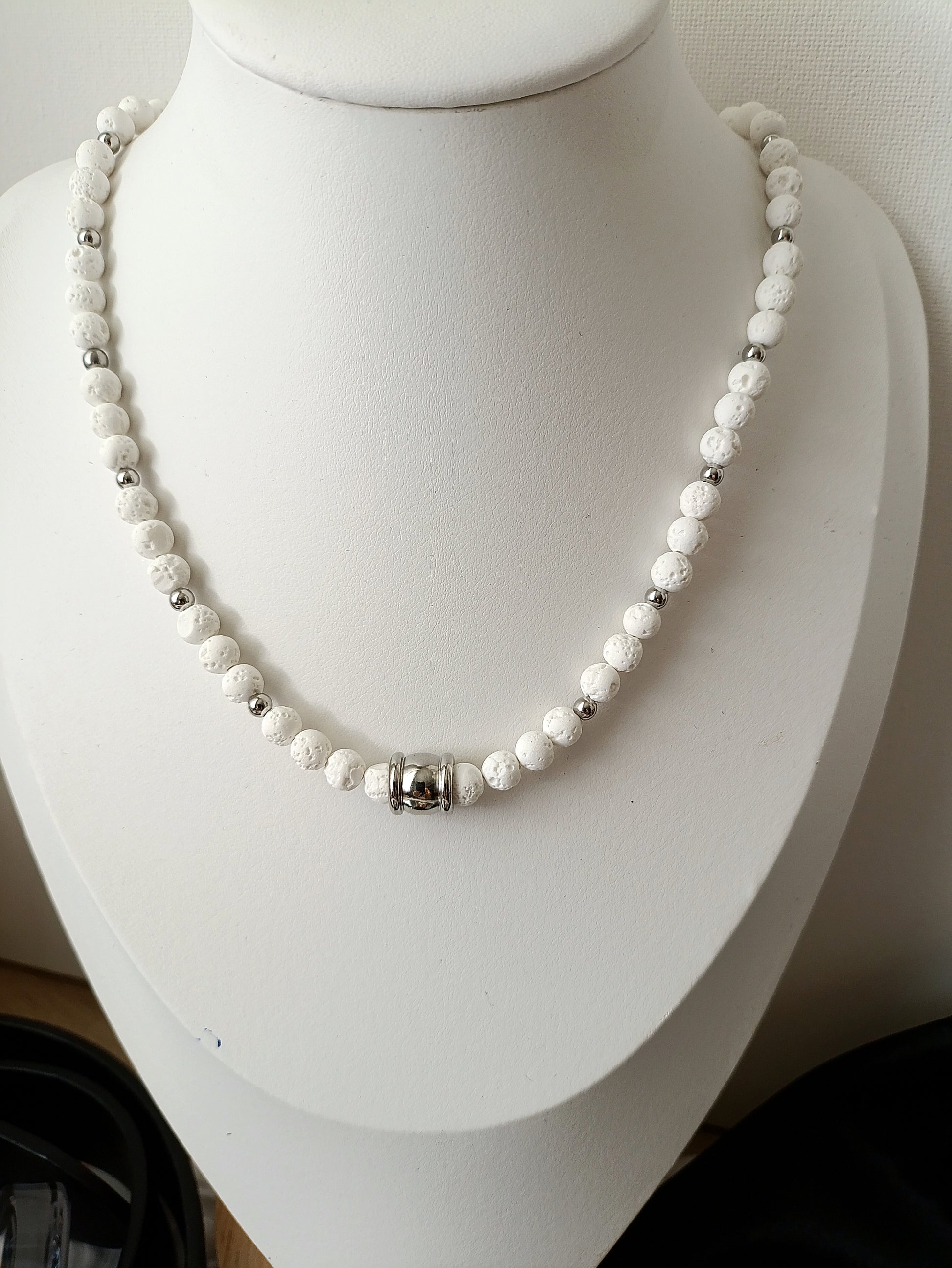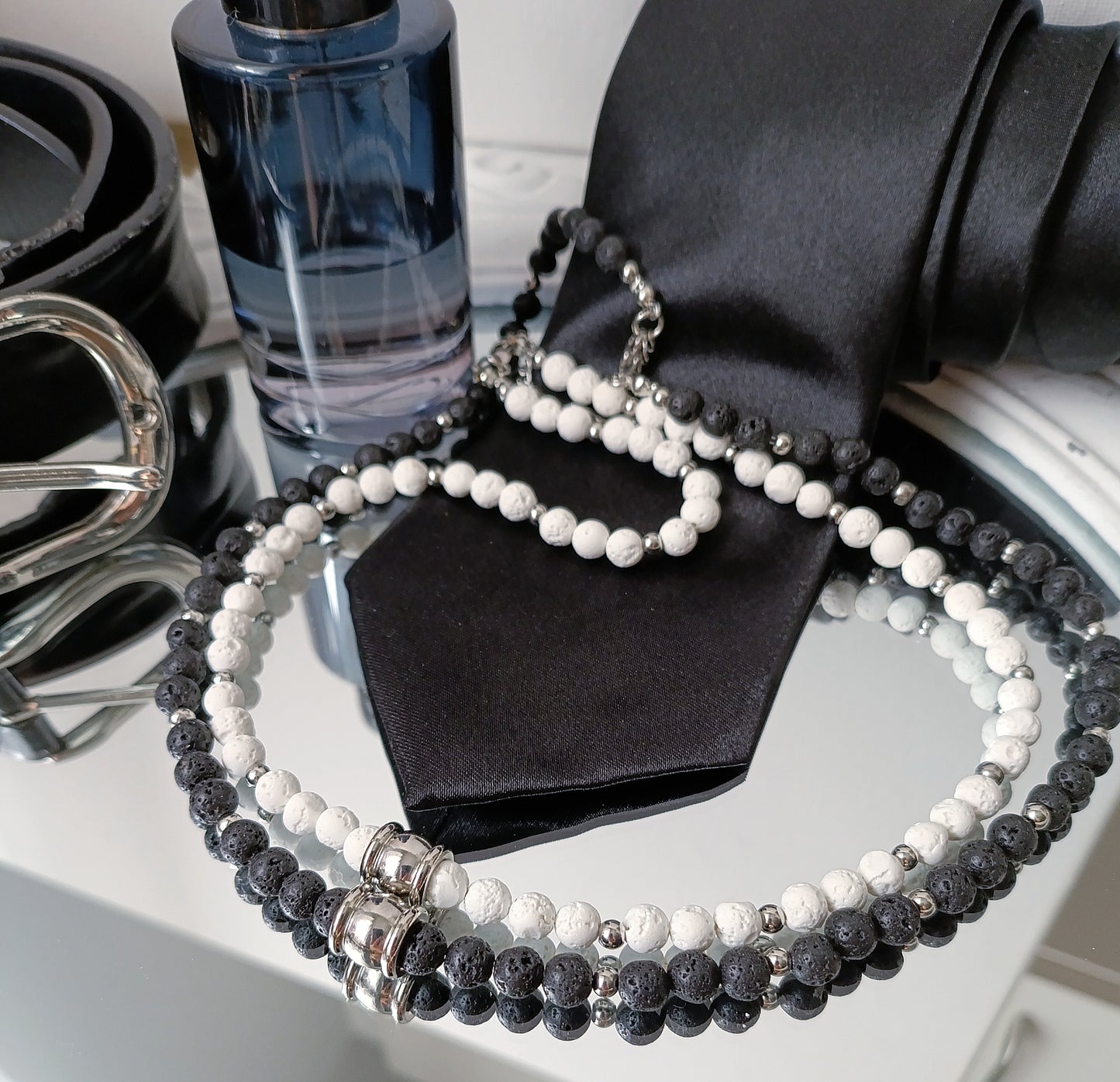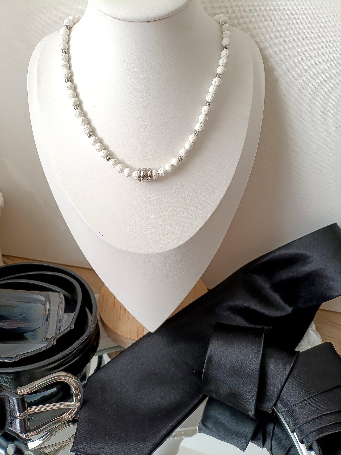 - Tout y est, la pureté des pierres, leur force, qui accroit la confiance en soi, apporterait calme, stabilité et sécurité. Chaque perle est différente, d'où des pièces UNIQUES. Vous remarquerez les détails de ces perles qui font de ce collier une pièce incontournable, chic, synonyme de virilité !