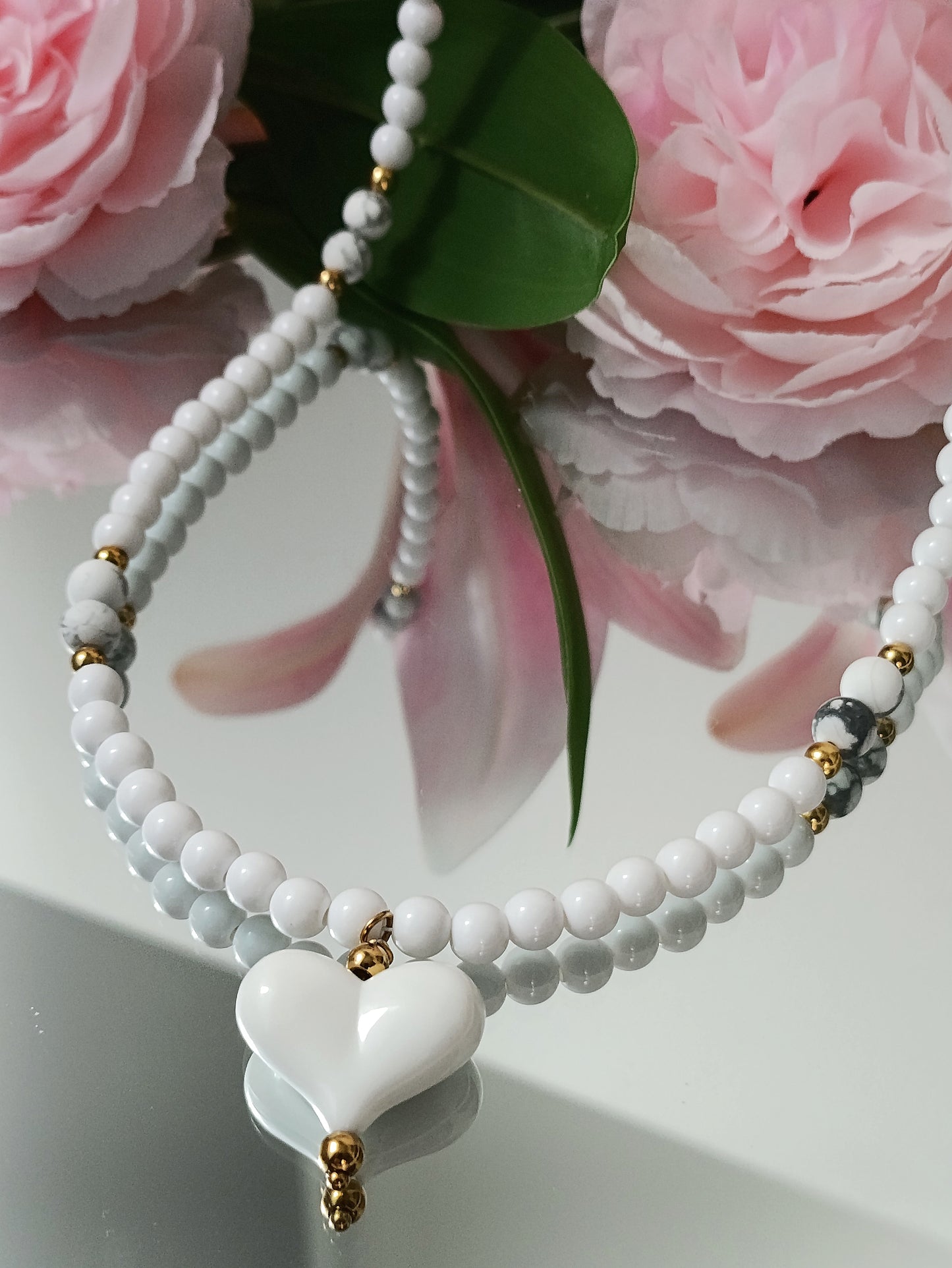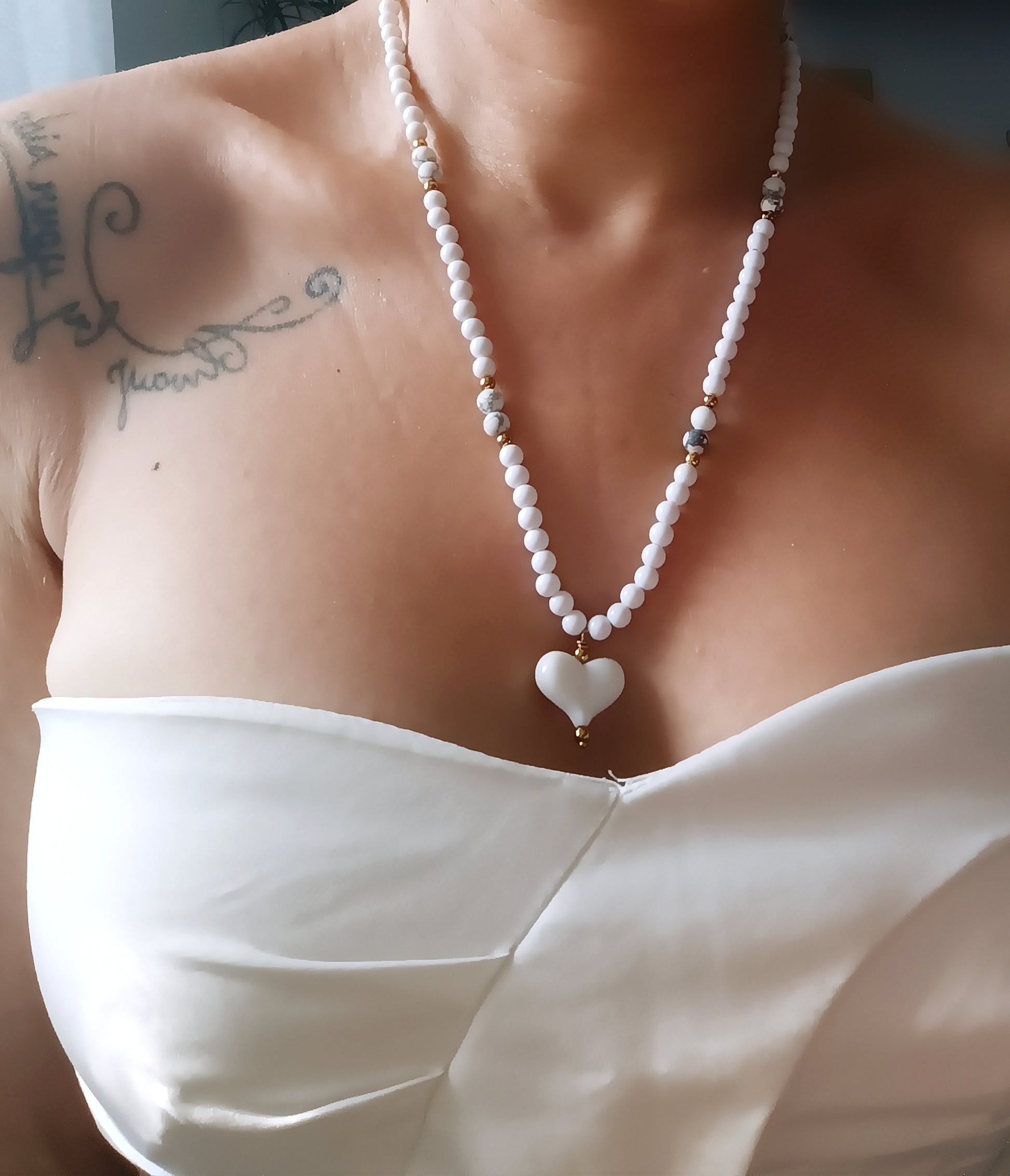 - Le collier blanc possède des pierre de howlite