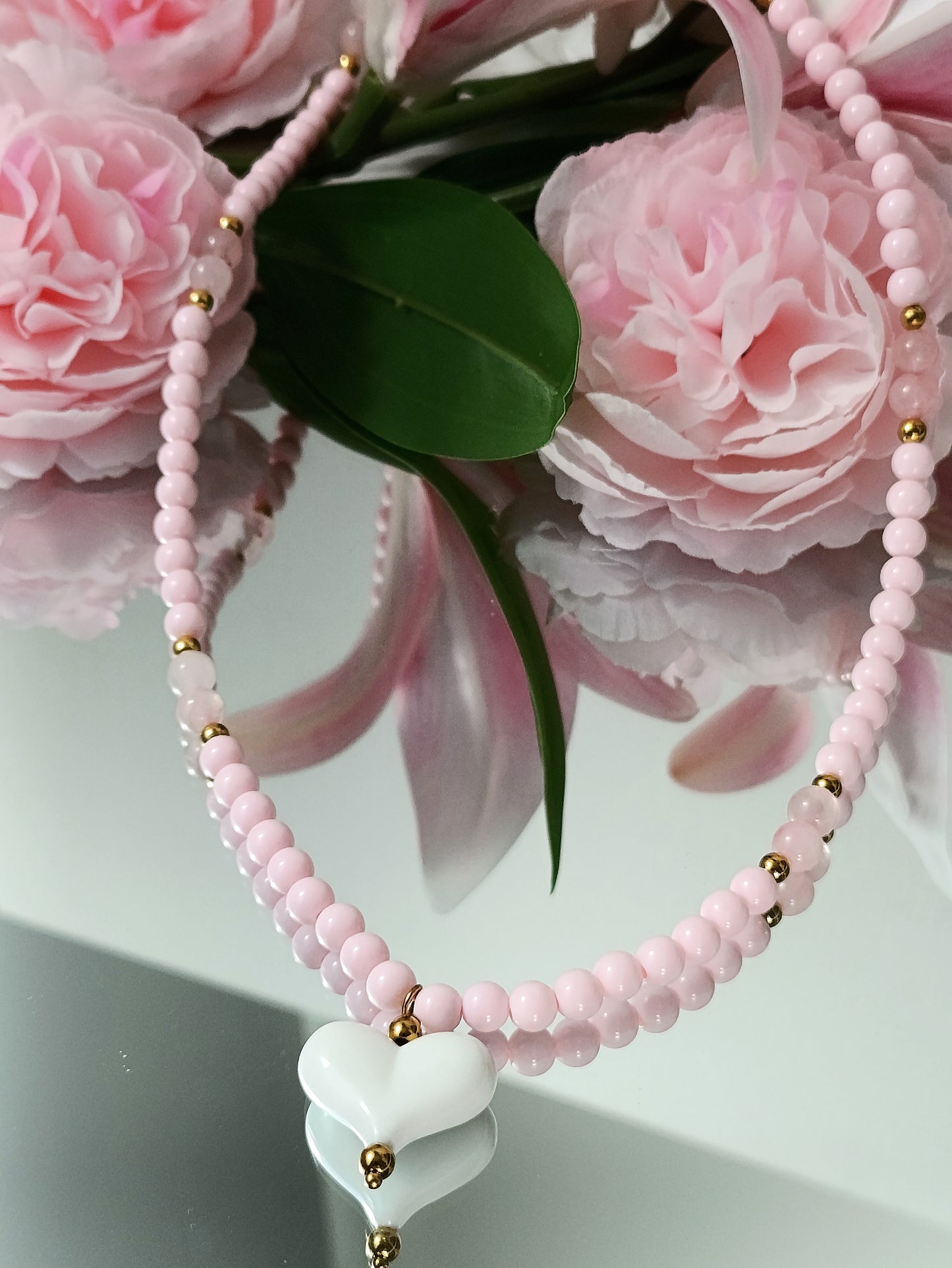 - Le collier rose, du quartz rose