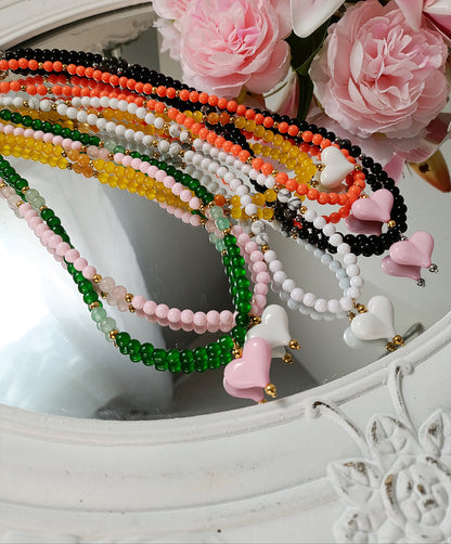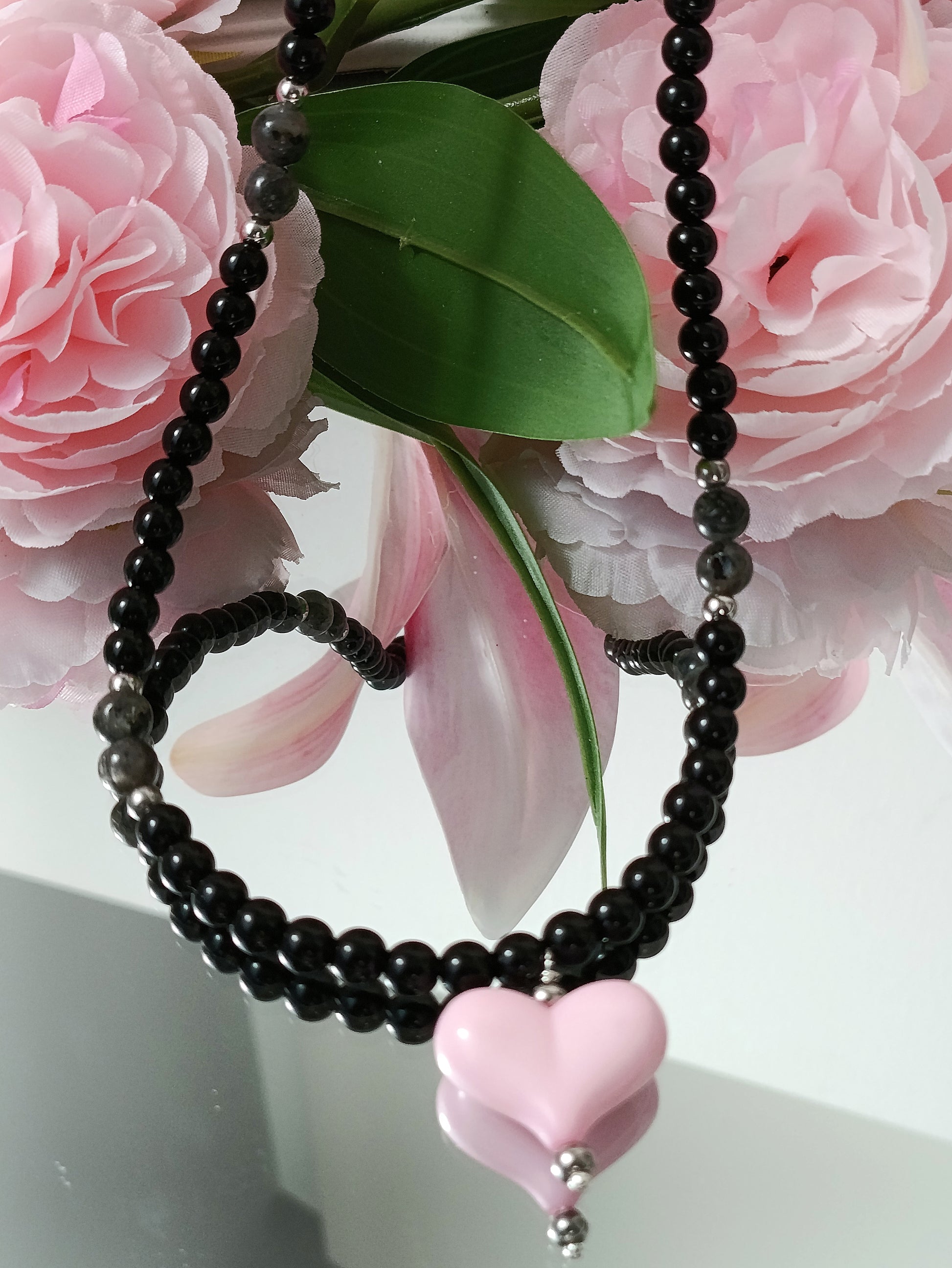 - Création de collier en perles semi-précieuses, perles en acrylique, perles de verres et acier inoxydable