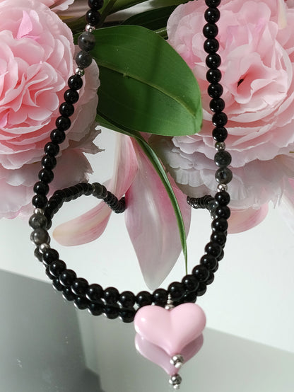 - Le collier noir, de la tourmaline et acier inoxydable argenté