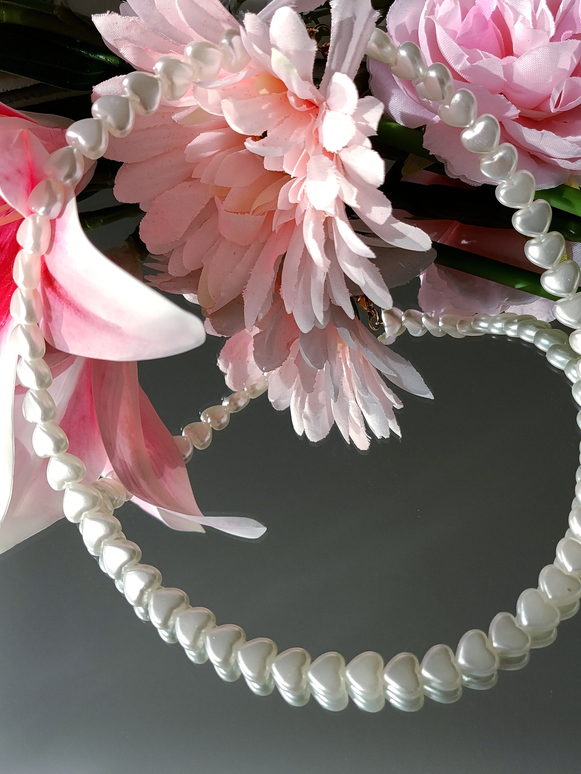 - Un amour de ras de cou... Des perles en forme de cœur beige nacré qui captent la lumière, de doux reflets irisés, un charme indéniable, du romantisme, une promesse...